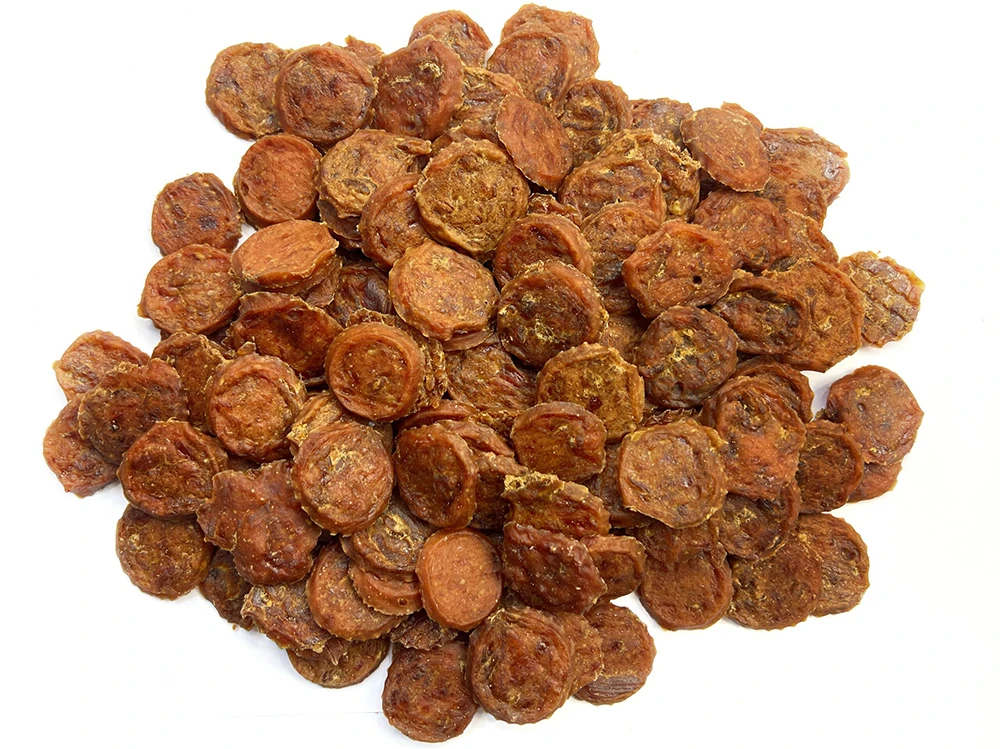 Skład: Mięso z kaczki 84 %, Białko roślinne 6 %, Gliceryna 4 %, Skrobia 3 %, Sorbitol 2 %, Aromat naturalny 1 %