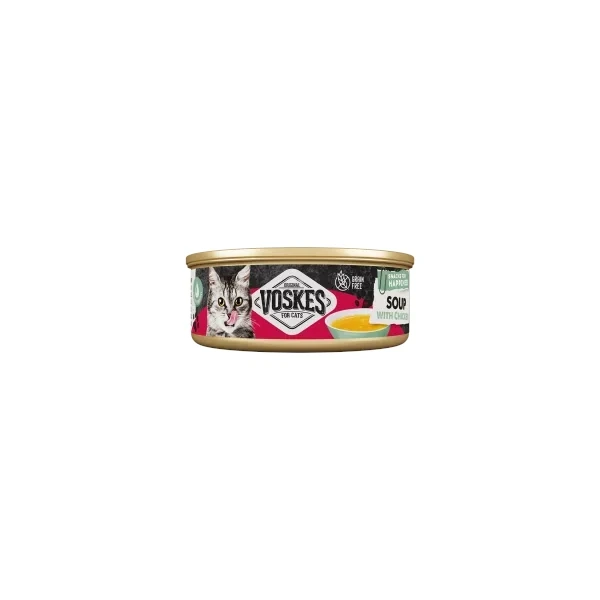 Voskes Chicken Soup to smaczna przekąska, która zachęca koty do picia większej ilości płynów i wspomaga nawodnienie.