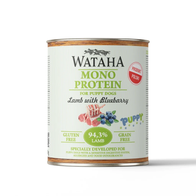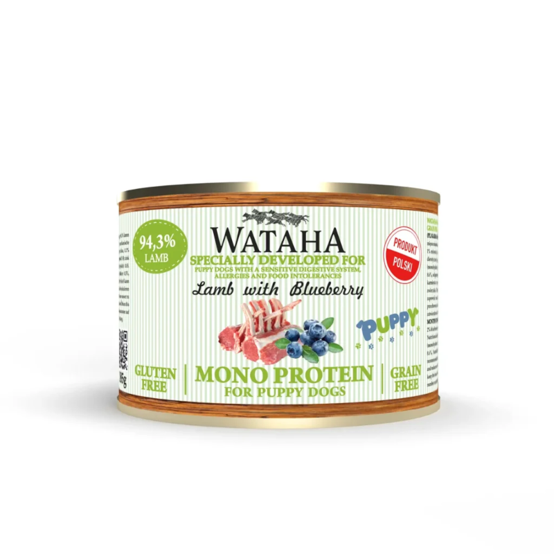 Mokra karma Wataha dla szczeniąt o smaku jagnieciny z borówką w puszce 185g/400g/800g