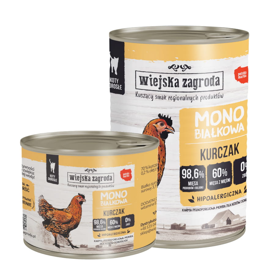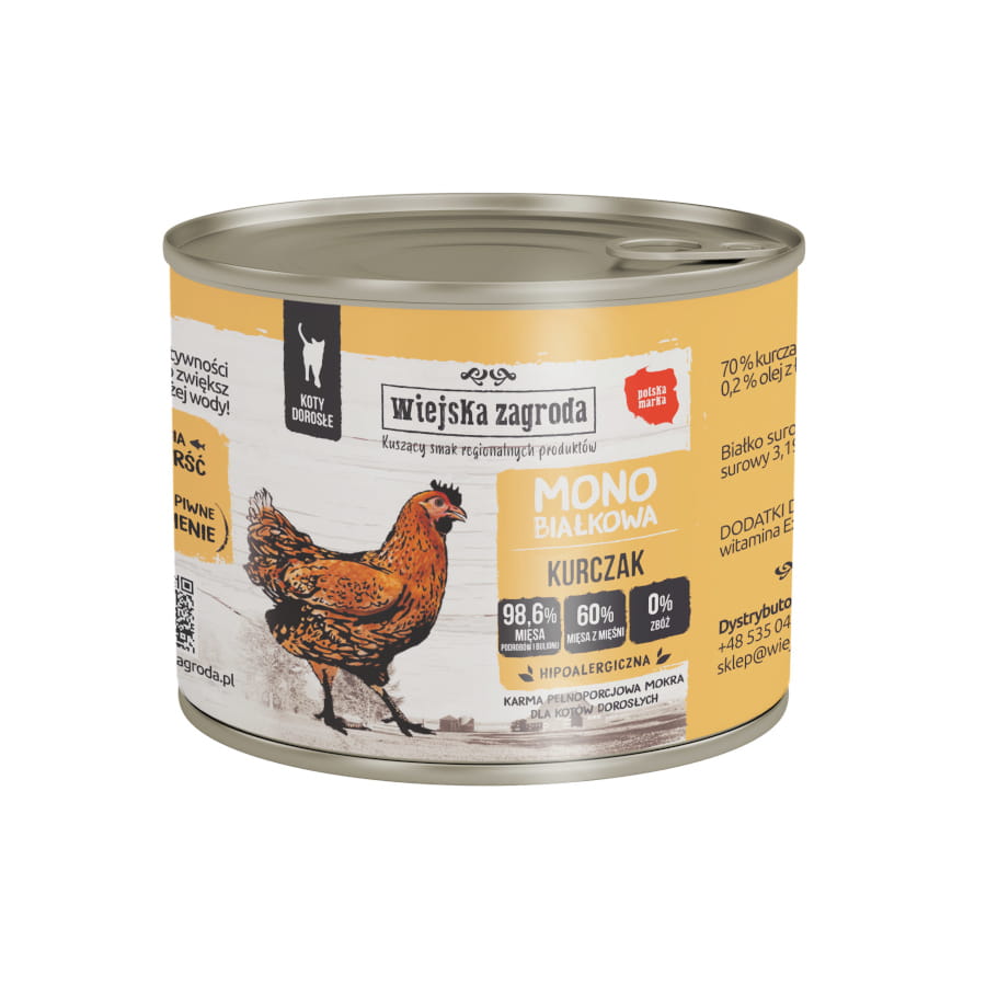 Wiejska Zagroda MONO 200g/400g kurczak - mokra karma dla kotów