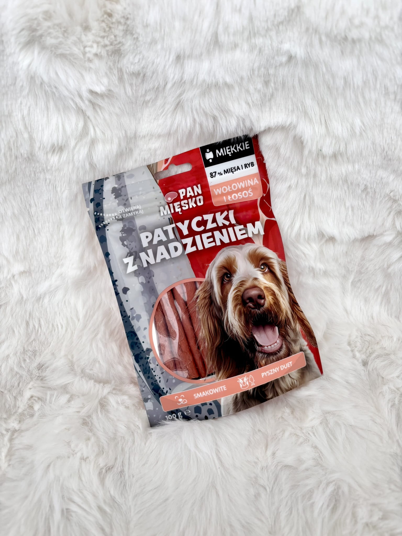 - PRZYSMAK PATYCZKI WOŁOWE NADZIEWANE ŁOSOSIEM 100G PAN MIĘSKO